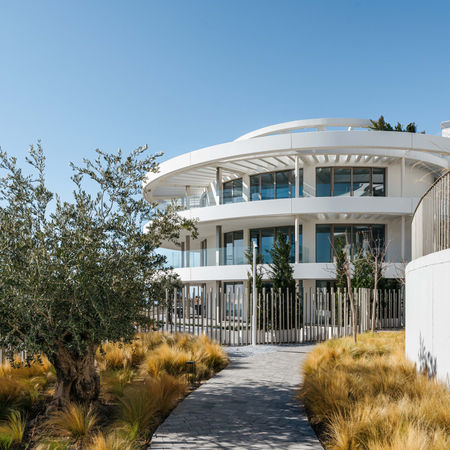 This exceptional residence spans a total area of 595 m² with 354 m² of terraces, providing unparalleled modern comfort. Each meticulously designed room optimizes space and natural light to showcase the stunning views and ensure privacy. The open-plan living area features floor-to-ceiling windows and glass doors leading to the expansive terraces, seamlessly merging indoor and outdoor living. A sleek fully fitted kitchen with an island connects to the dining area, creating an ideal space for entertaining.